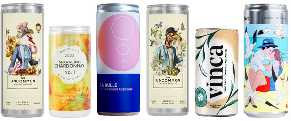 The Uncommon Eleanor Bubbly Rosé Canned Wine Co Sparkling ChardonnayMad Med La Bulle Organic Sparkling RoseThe Uncommon Gerald Bubbly WhiteDjuce Bubbles 2022Vinca Organic Sparkling White